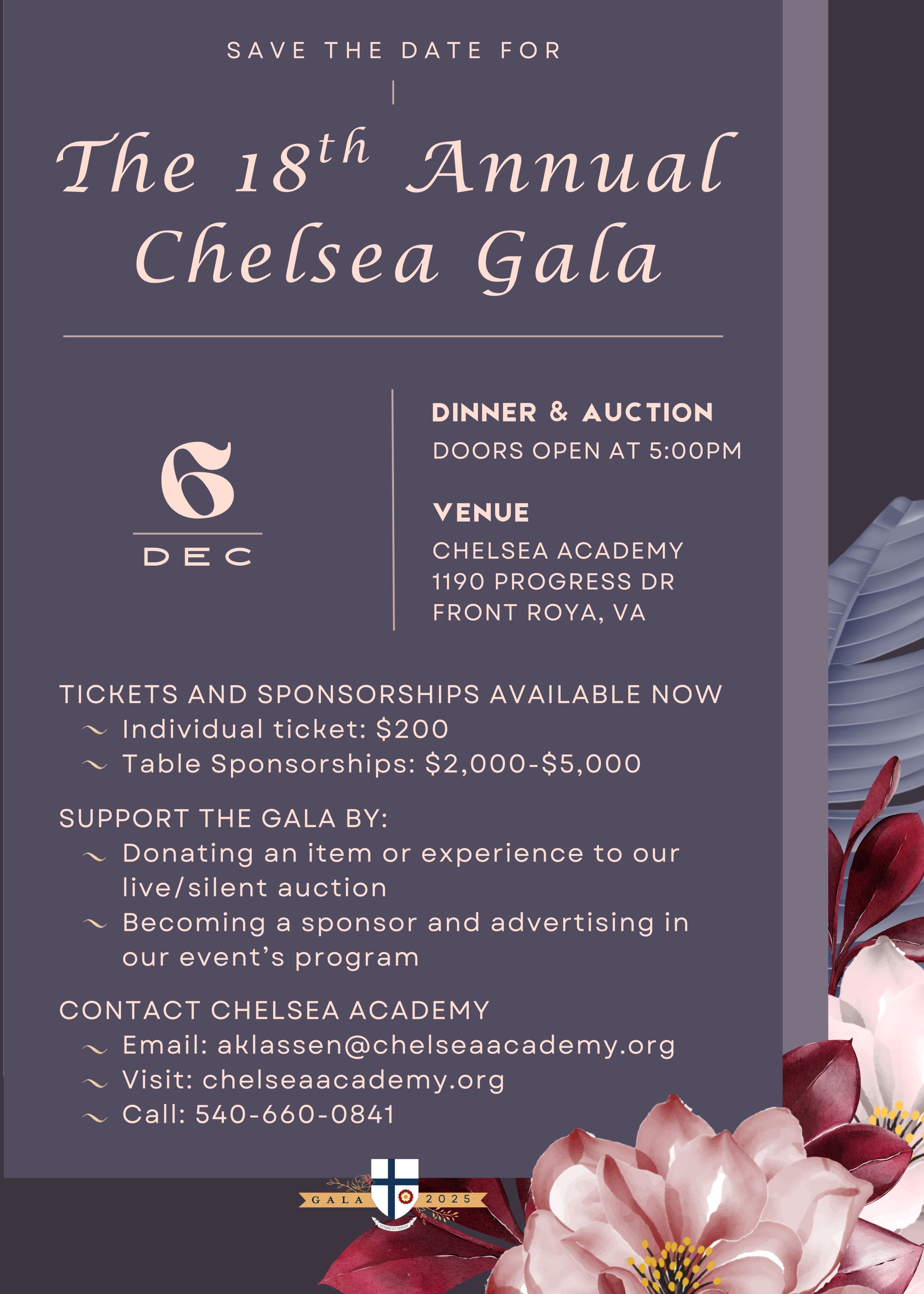 Gala seats are going fast! Business sponsorships are still available but we would recommend locking them in ASAP. Chelsea is actively seeking any fun destinations, outings, and items for the live and silent auctions. No idea is too small so please do not hesitate to reach out to Alex Klassen at aklassen@chelseaacademy.org. We are beyond grateful for the support for our beautiful school!
