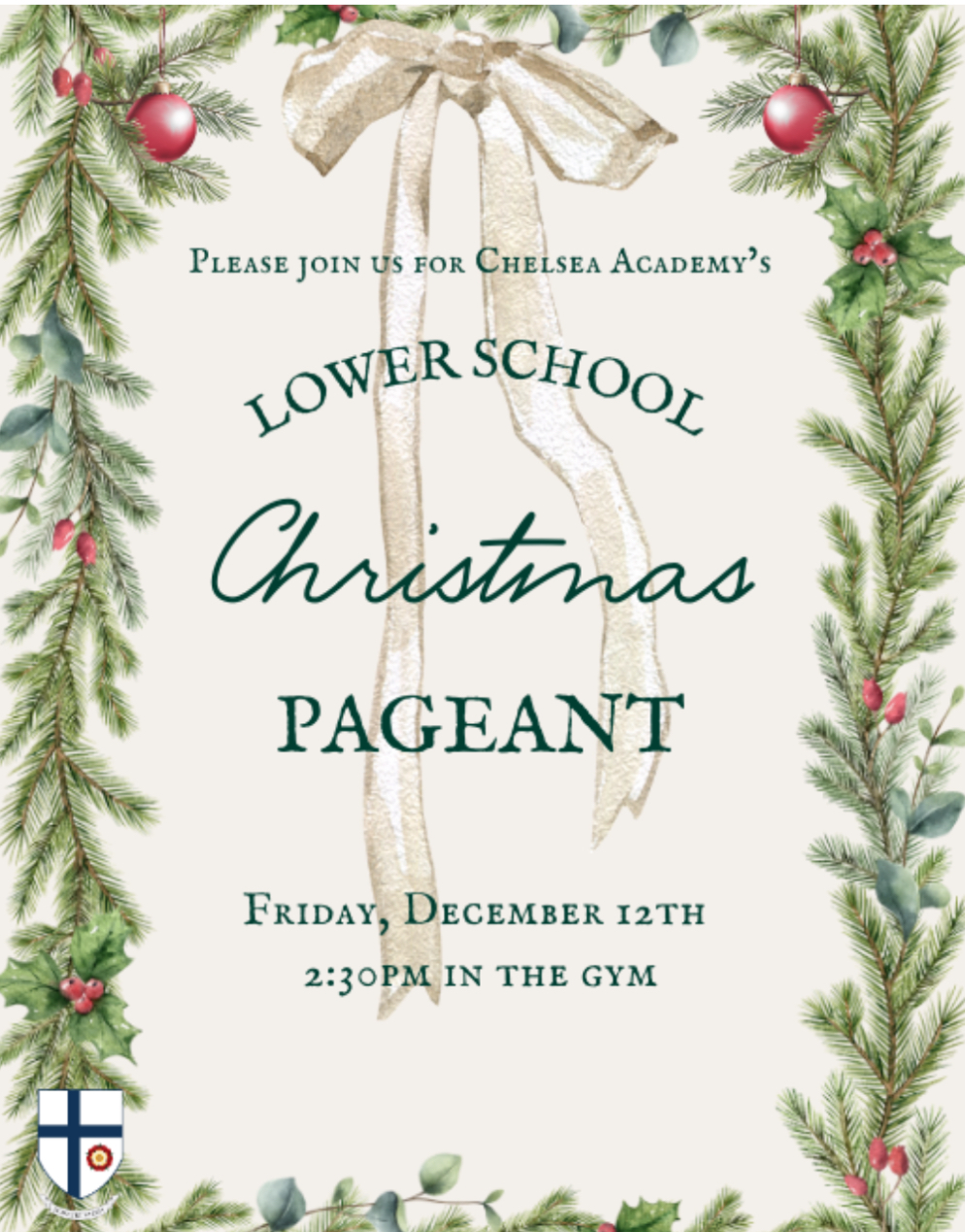The Lower School will have its 4th Annual Christmas Pageant on Friday, December 12th. Families and friends are invited to join us at 2:30pm on our gym for this delightful and festive performance! Questions about the pageant can be sent to our Music Teacher, Ms. Nikirk at nnikirk@chelseaacademy.org.